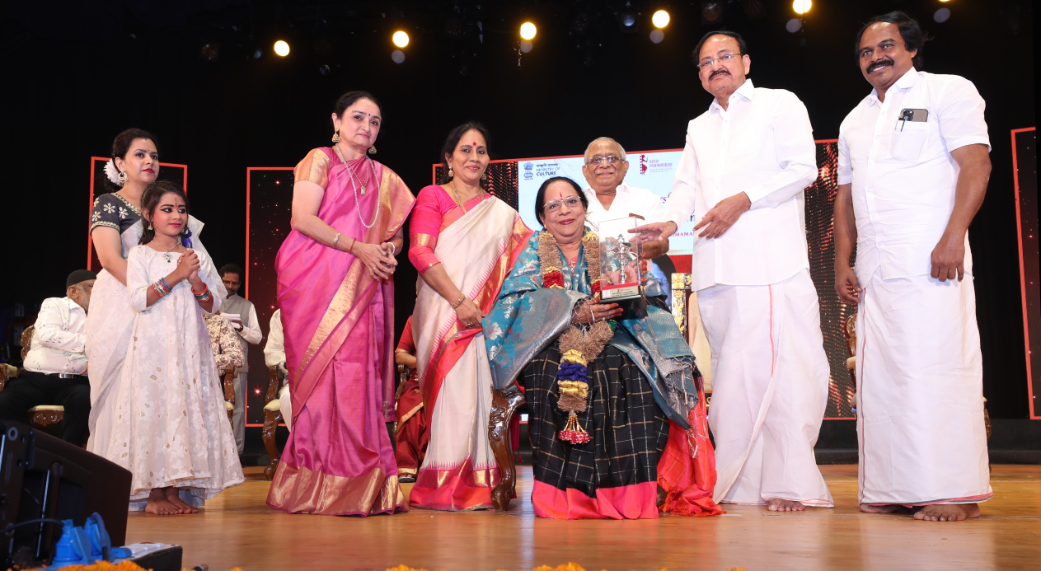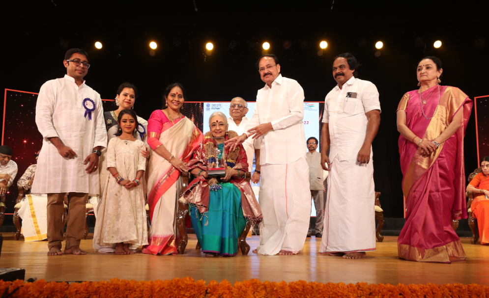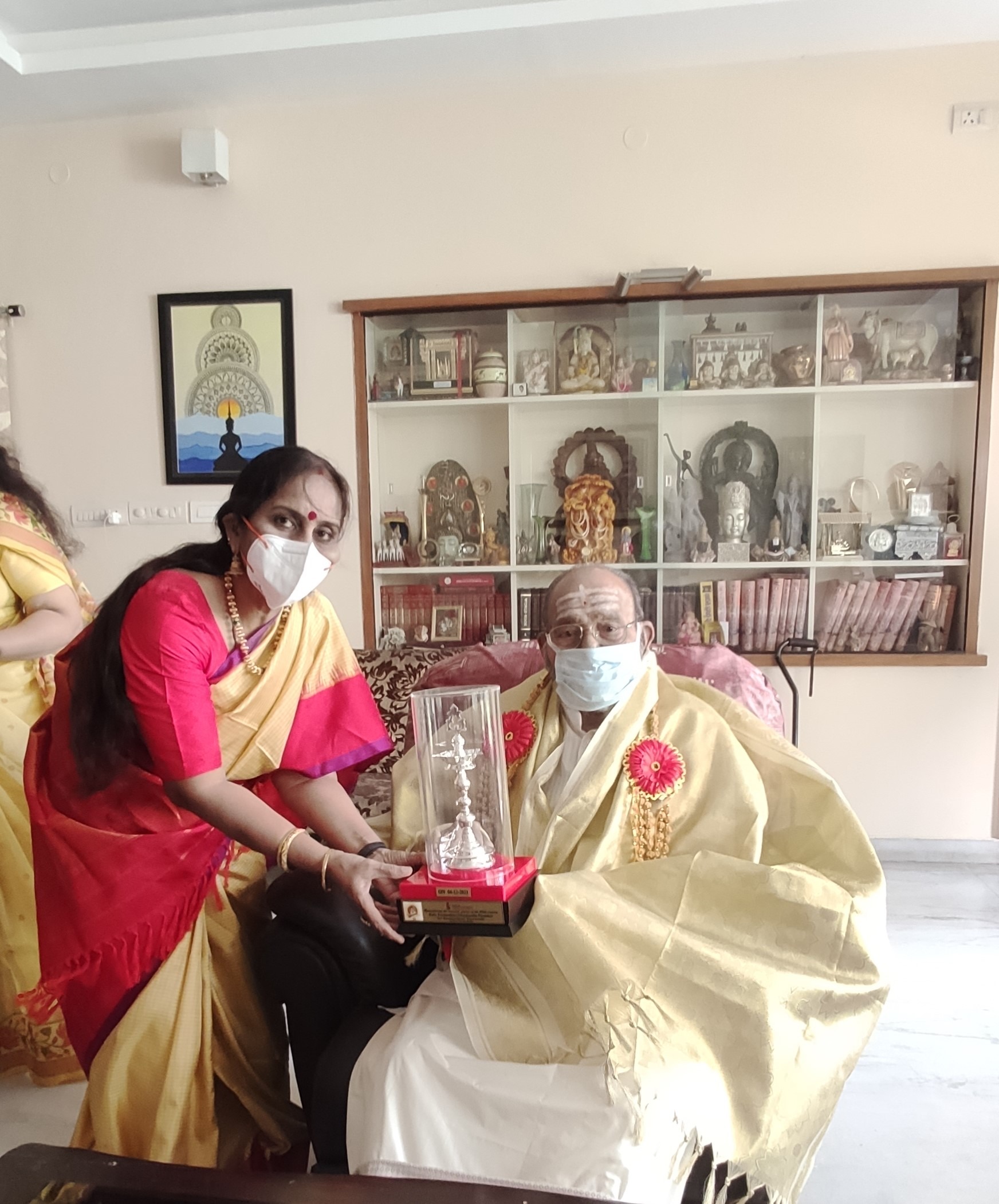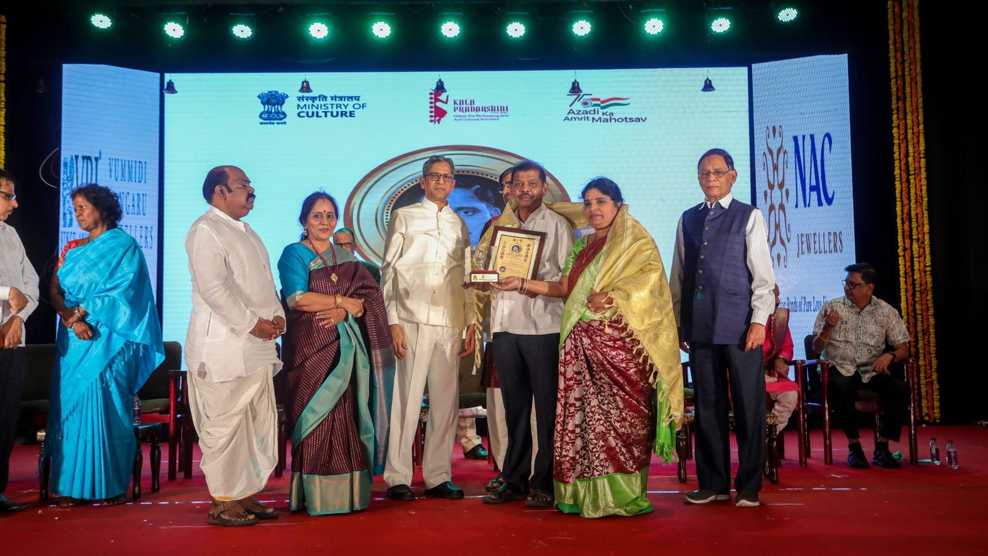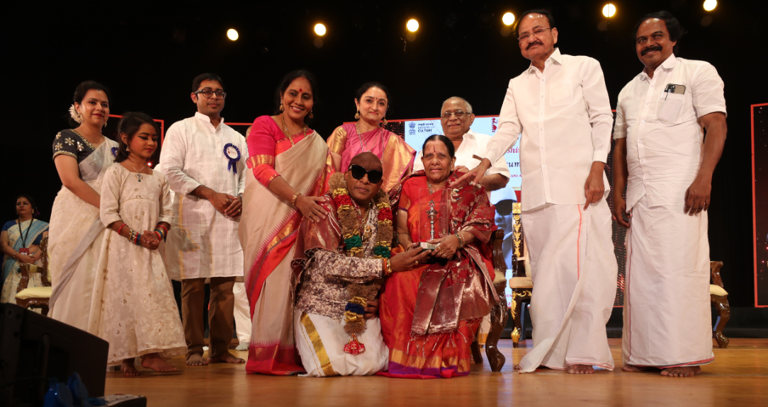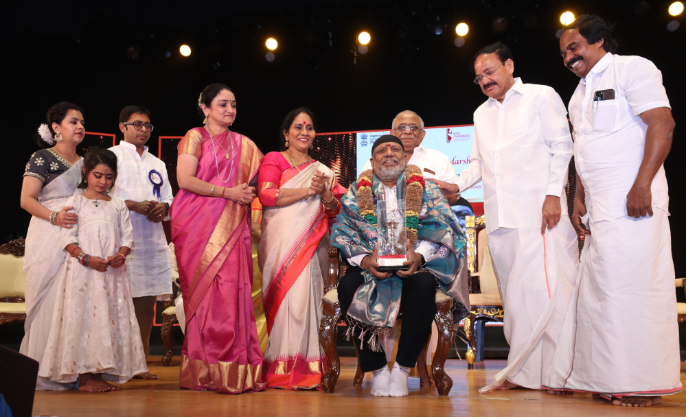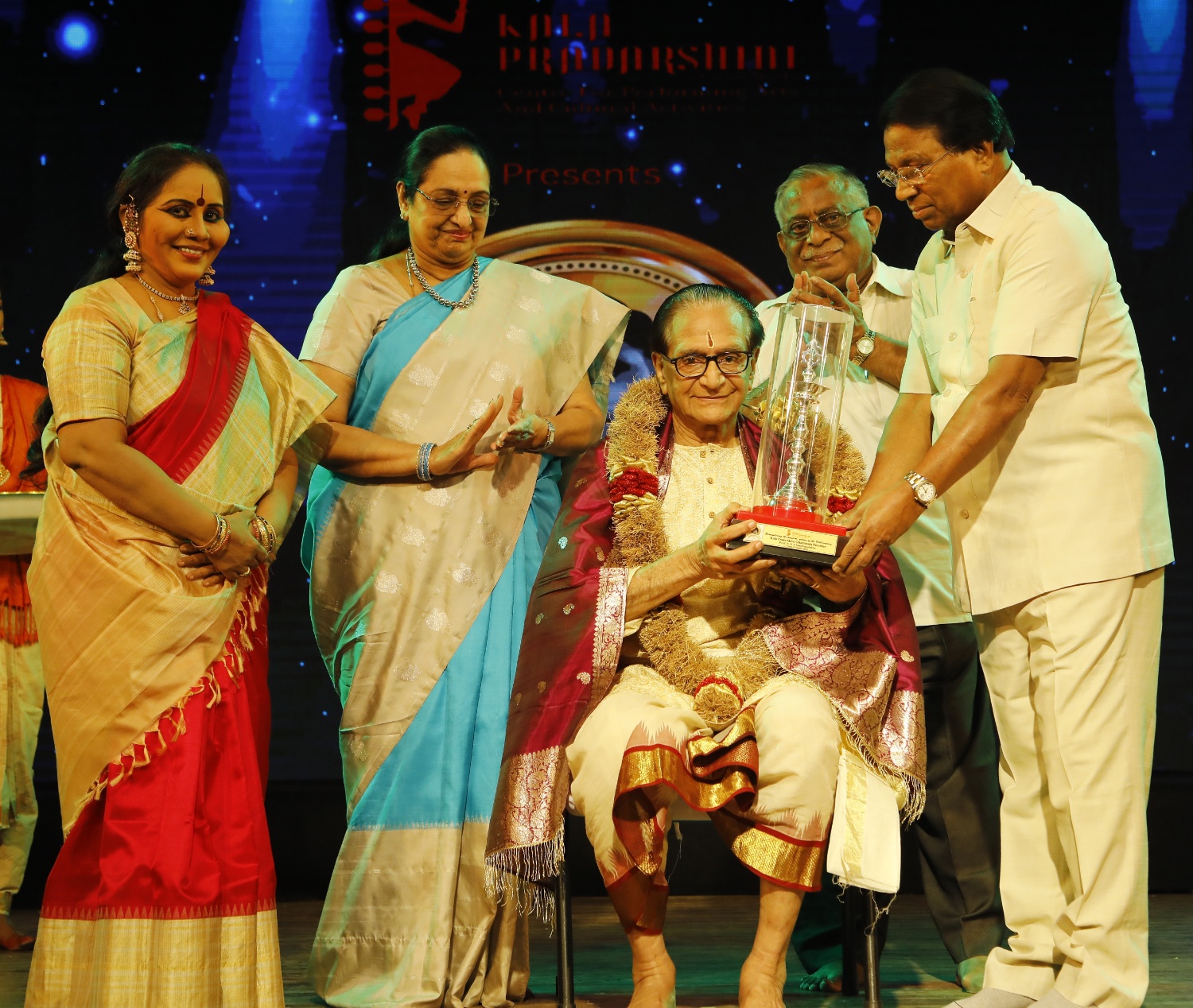 C. V. Chandrasekhar (born 22 May 1935) is an Indian Bharatanatyam dancer, academician, dance scholar, composer, and choreographer. He retired as Head of the Faculty of Performing Arts of M.S. University, Baroda in 1992.Professor Chandrashekhar and wife Jaya Chandrasekhar are one of the best known dancing couples of Bharata Natyam in India, during the 1970s and ’80s, they performed with their daughters Chitra and Manjari. He now runs his own dance institution, Nrityashree, in Chennai. He was awarded the Sangeet Natak Akademi Award for Bharatnatyam in 1993, by the Sangeet Natak Akademi, India's National Academy of Music, Dance and Drama, and received the Kalidas Samman in 2008. In 2011, he was honoured with the Padma Bhushan by the Government of India.Chandrasekhar started his dancing career in 1947, when there were few male dancers. He served at the Banaras Hindu University and later joined M.S. University of Baroda, where he retired as the Head and Dean of the Faculty of Performing Arts in 1992. C.V. Chandrasekhar is a multi-faceted personality being a dancer, choreographer, researcher, musician, academician, composer and highly acclaimed teacher of Bharatanatyam. He has been performing for the past six decades in India and all over the globe and is invited by many dancers the world over to teach and to choreograph. He continues to perform on stage well into his seventh decade.