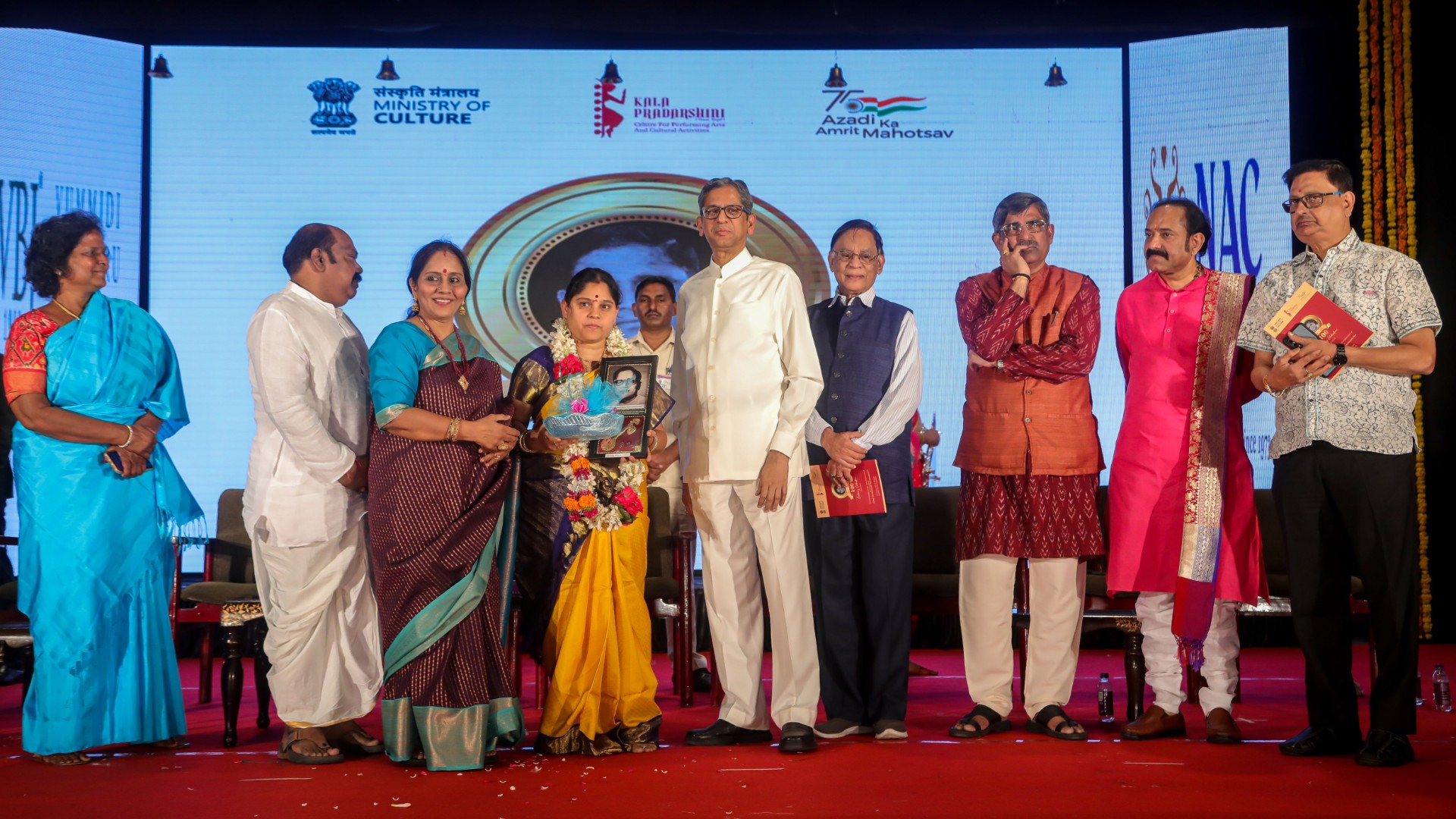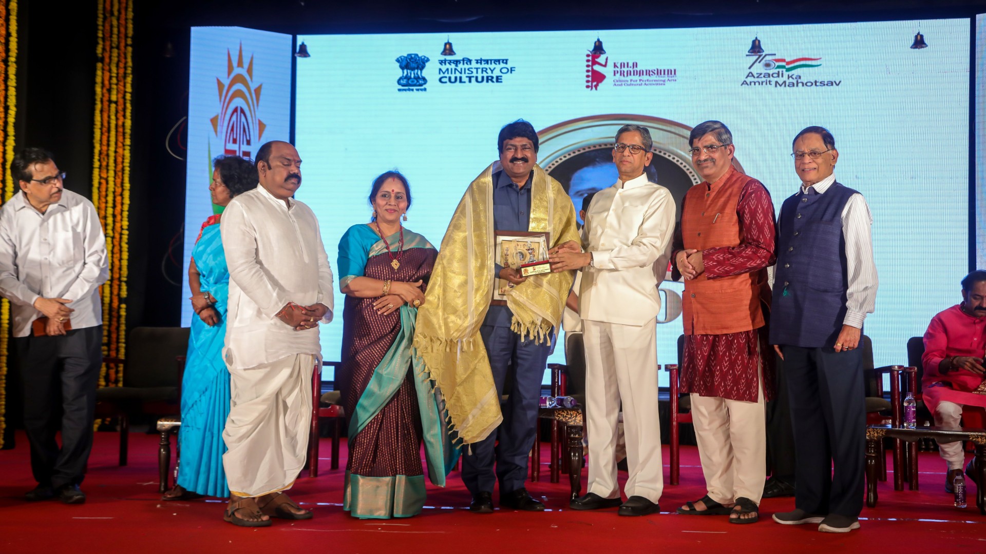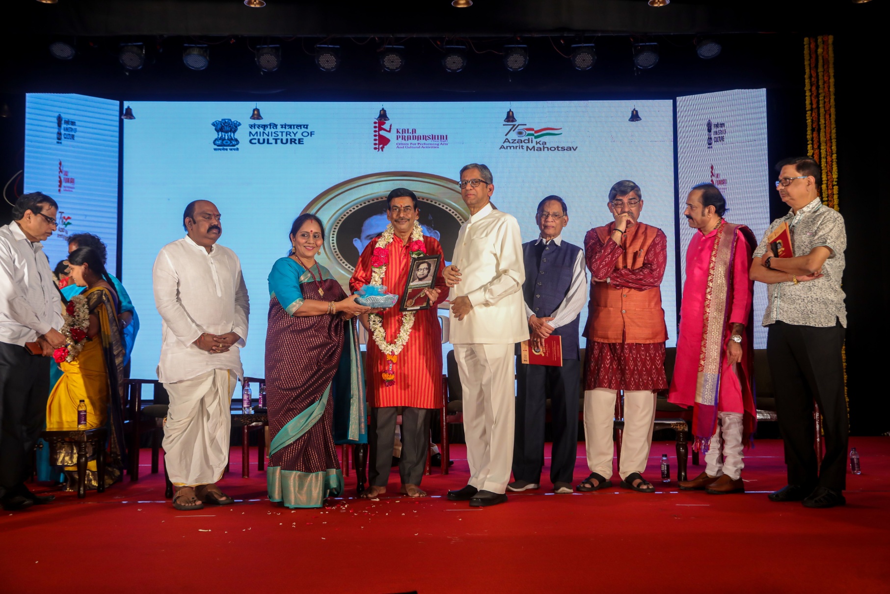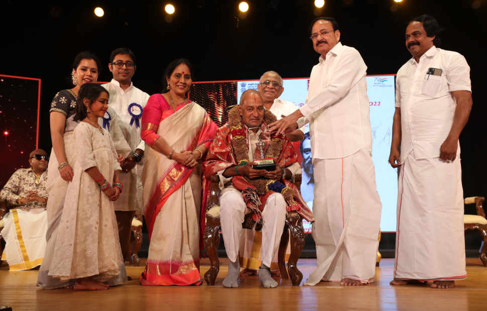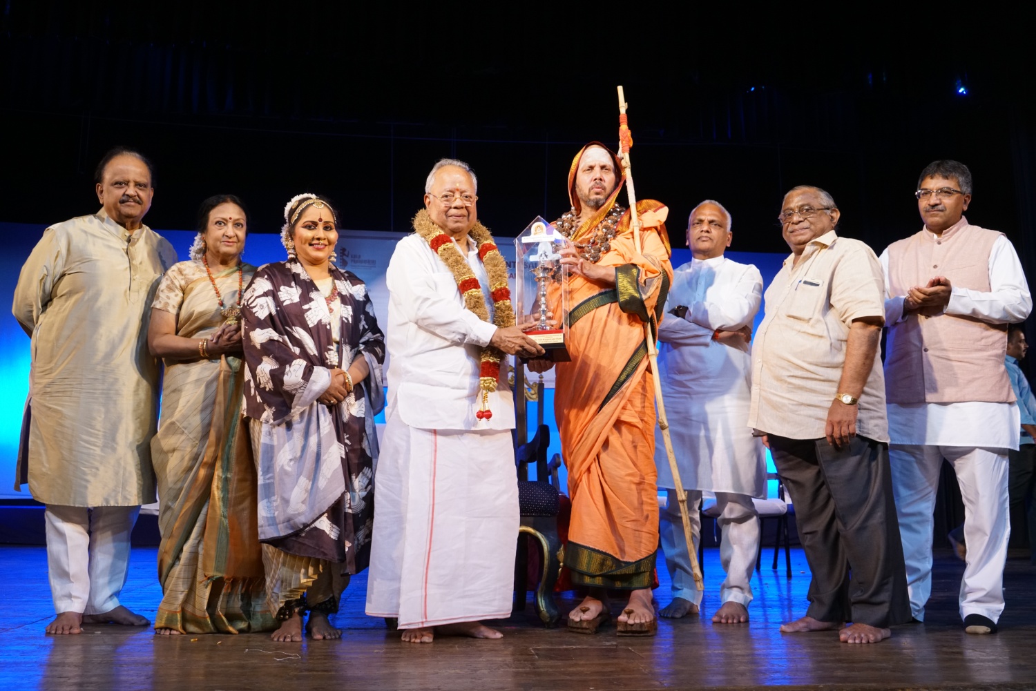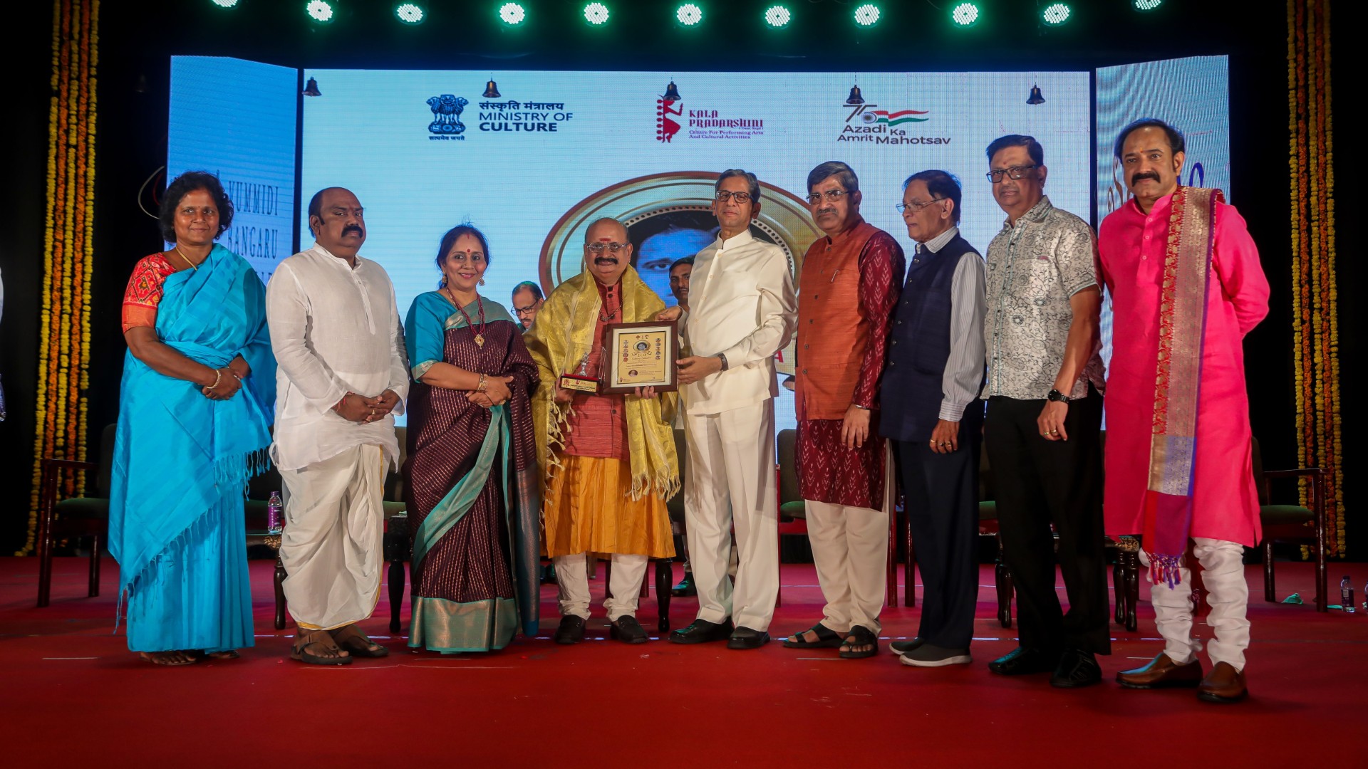 C. V. Chandrasekhar (born 22 May 1935) is an Indian Bharatanatyam dancer, academician, dance scholar, composer, and choreographer. He retired as Head of the Faculty of Performing Arts of M.S. University, Baroda in 1992.Professor Chandrashekhar and wife Jaya Chandrasekhar are one of the best known dancing couples of Bharata Natyam in India, during the 1970s and ’80s, they performed with their daughters Chitra and Manjari. He now runs his own dance institution, Nrityashree, in Chennai. He was awarded the Sangeet Natak Akademi Award for Bharatnatyam in 1993, by the Sangeet Natak Akademi, India's National Academy of Music, Dance and Drama, and received the Kalidas Samman in 2008. In 2011, he was honoured with the Padma Bhushan by the Government of India.Chandrasekhar started his dancing career in 1947, when there were few male dancers. He served at the Banaras Hindu University and later joined M.S. University of Baroda, where he retired as the Head and Dean of the Faculty of Performing Arts in 1992. C.V. Chandrasekhar is a multi-faceted personality being a dancer, choreographer, researcher, musician, academician, composer and highly acclaimed teacher of Bharatanatyam. He has been performing for the past six decades in India and all over the globe and is invited by many dancers the world over to teach and to choreograph. He continues to perform on stage well into his seventh decade.