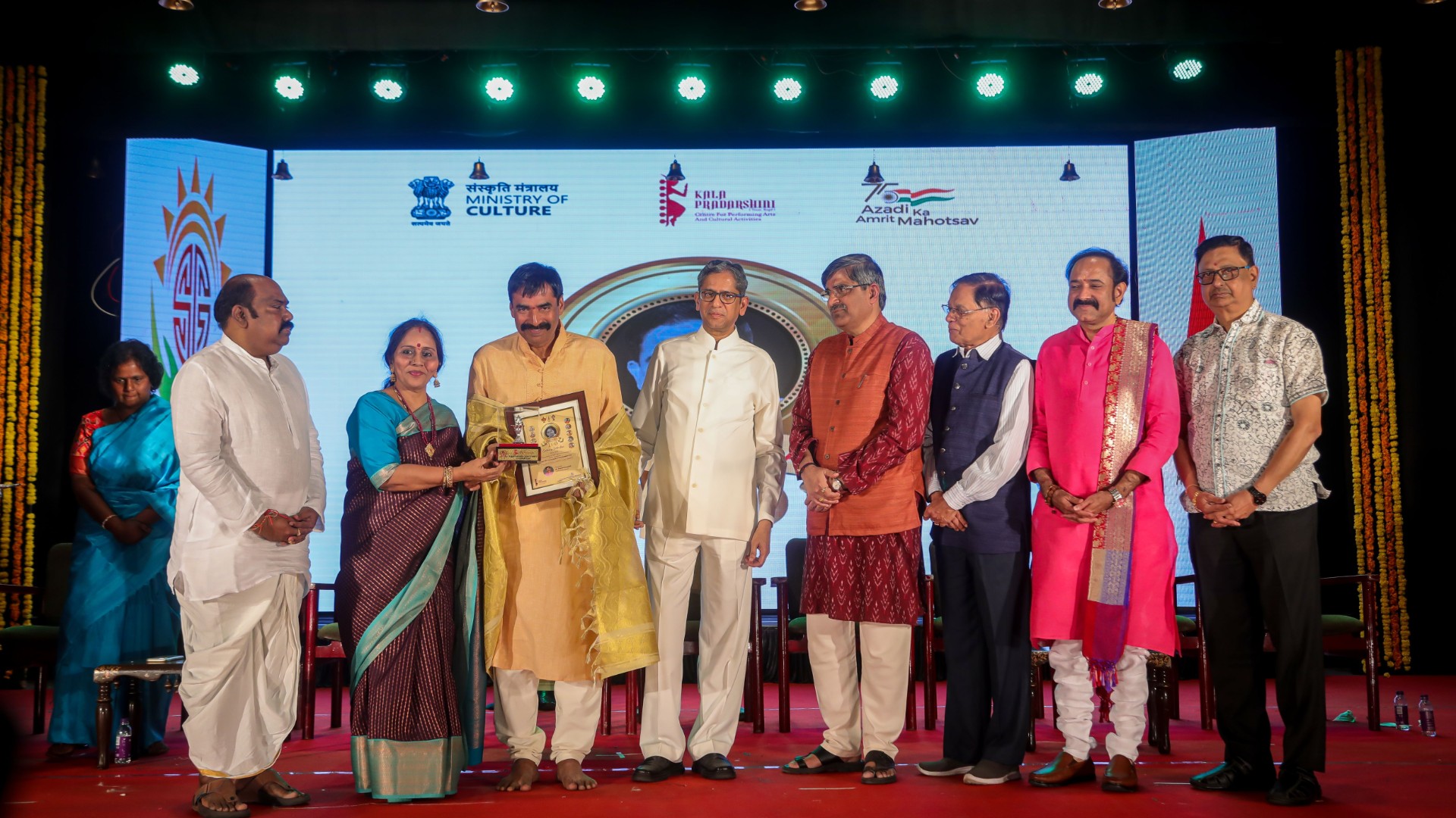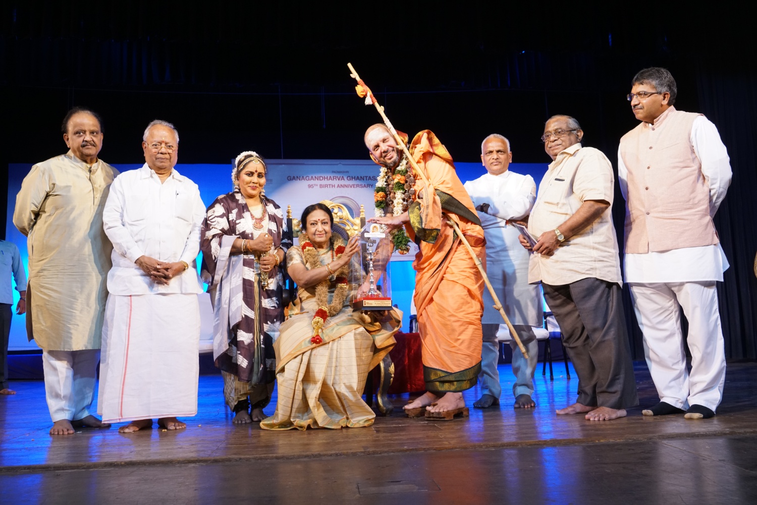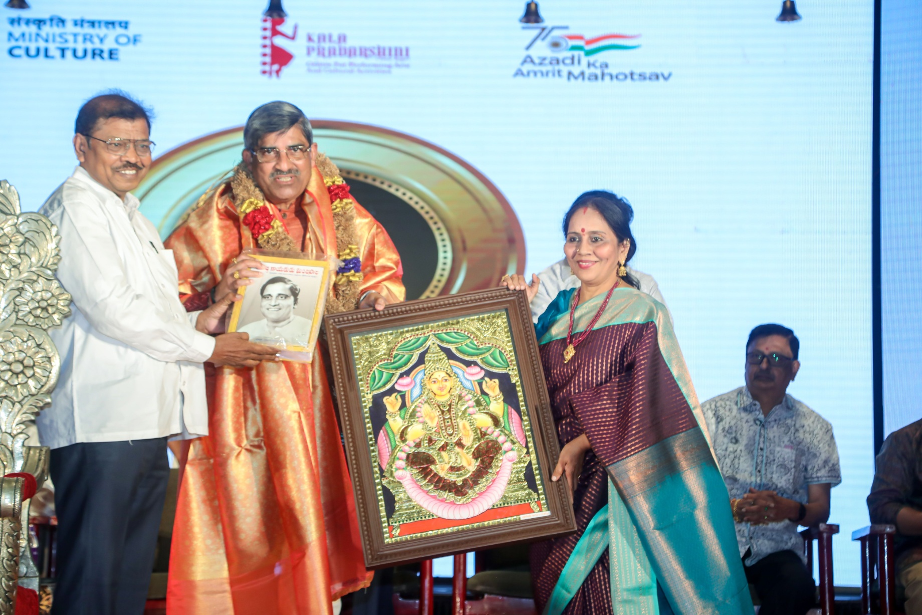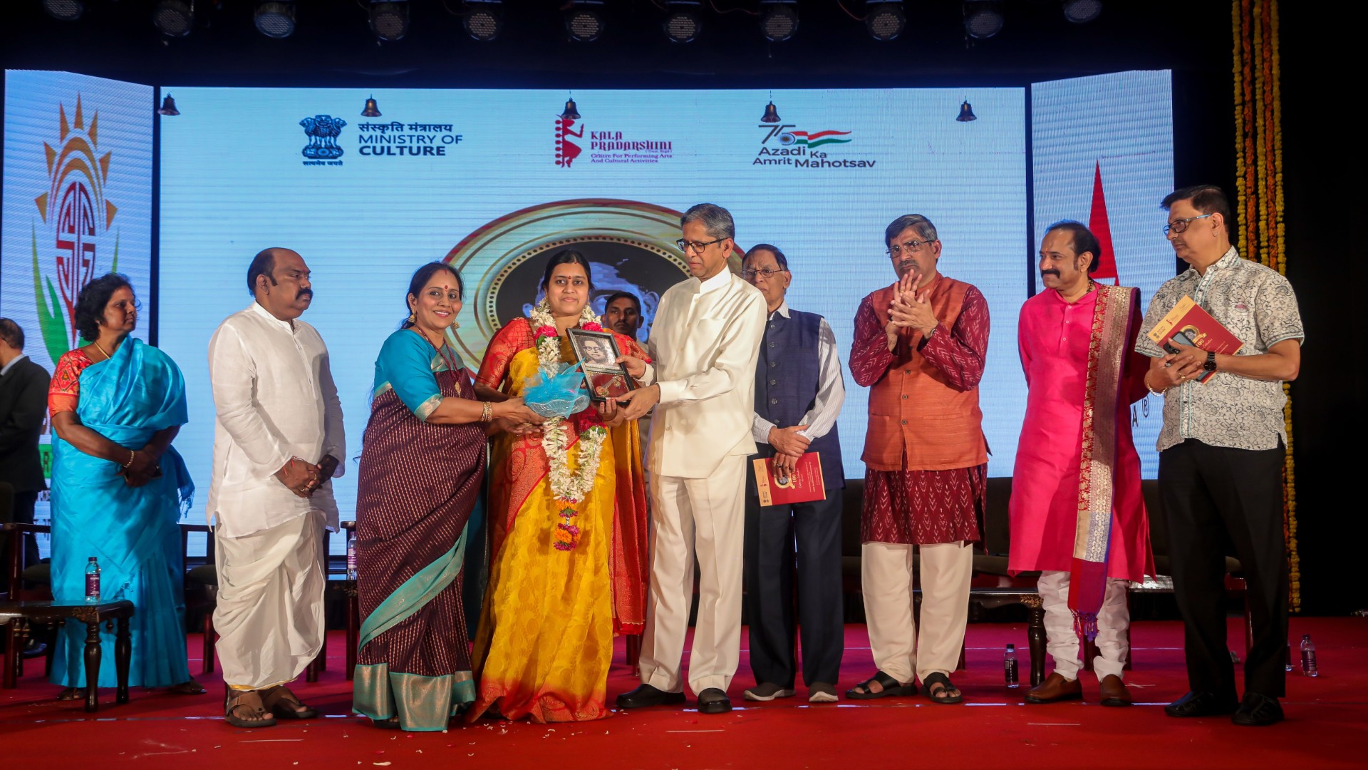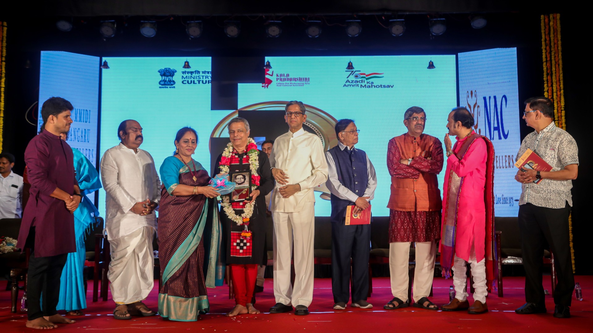 C. V. Chandrasekhar (born 22 May 1935) is an Indian Bharatanatyam dancer, academician, dance scholar, composer, and choreographer. He retired as Head of the Faculty of Performing Arts of M.S. University, Baroda in 1992.Professor Chandrashekhar and wife Jaya Chandrasekhar are one of the best known dancing couples of Bharata Natyam in India, during the 1970s and ’80s, they performed with their daughters Chitra and Manjari. He now runs his own dance institution, Nrityashree, in Chennai. He was awarded the Sangeet Natak Akademi Award for Bharatnatyam in 1993, by the Sangeet Natak Akademi, India's National Academy of Music, Dance and Drama, and received the Kalidas Samman in 2008. In 2011, he was honoured with the Padma Bhushan by the Government of India.Chandrasekhar started his dancing career in 1947, when there were few male dancers. He served at the Banaras Hindu University and later joined M.S. University of Baroda, where he retired as the Head and Dean of the Faculty of Performing Arts in 1992. C.V. Chandrasekhar is a multi-faceted personality being a dancer, choreographer, researcher, musician, academician, composer and highly acclaimed teacher of Bharatanatyam. He has been performing for the past six decades in India and all over the globe and is invited by many dancers the world over to teach and to choreograph. He continues to perform on stage well into his seventh decade.